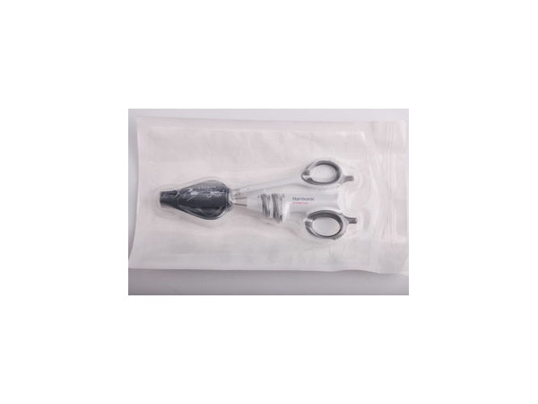 超聲高頻外科集成系統(tǒng)超聲刀頭包含一個軟質剪刀手柄夾持套組件以及兩個手控按鈕:MIN(最小)設置最小功率級別;MAX(最大)設置最大功率級別。該器械有一個彎形刀頭和帶有塑料襯墊的刀頭夾臂。產(chǎn)品為一次性使用,環(huán)氧乙烷滅菌。