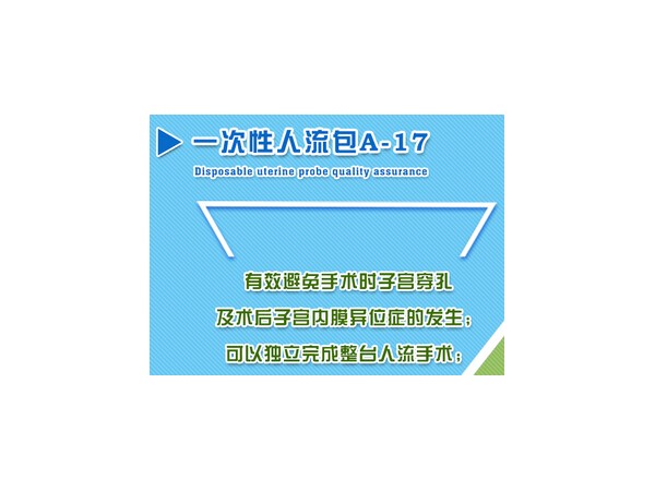 本產(chǎn)品由吸引管、直型子宮探針、擴(kuò)宮棒、墊巾等組合而成。選用配置:子宮頸鉗、子宮刮匙、子宮刮匙、陰道擴(kuò)張器、洞巾、檢查手套、外科手術(shù)手套、包布、袖套、褲腿、紗布、棉球、鑷子、負(fù)壓吸引管。經(jīng)環(huán)氧乙烷滅菌,產(chǎn)品無菌。