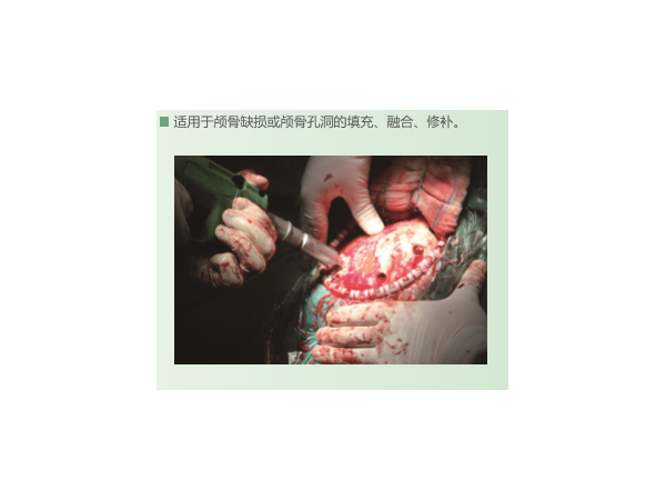 適用于脊柱損傷、脊柱退變等疾病以及其他臨床所需要的骨缺損的填充、融合、修補、輔助加固及非負重骨的重建。