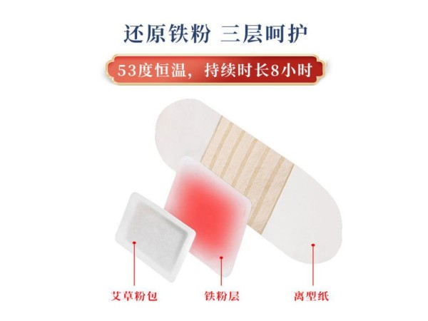 熱奄包由發(fā)熱袋、敷膜無紡布和含有壓敏膠的無紡布及硅油紙制成。