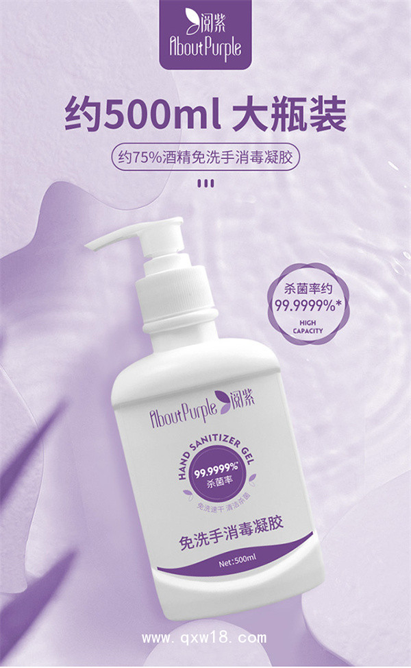 產(chǎn)品名:閱紫75%免洗手消毒凝膠500ml