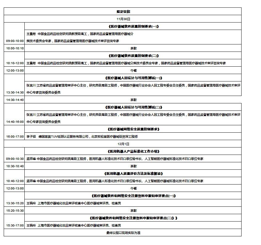 擬邀請醫(yī)用軟件、醫(yī)用機器人產(chǎn)品資深研發(fā)專家、行業(yè)標準專家、質量體系核查專家、審評審批專家針對相關的注冊、標準、核查等內(nèi)容開展深入交流,詳細信息近期發(fā)布。