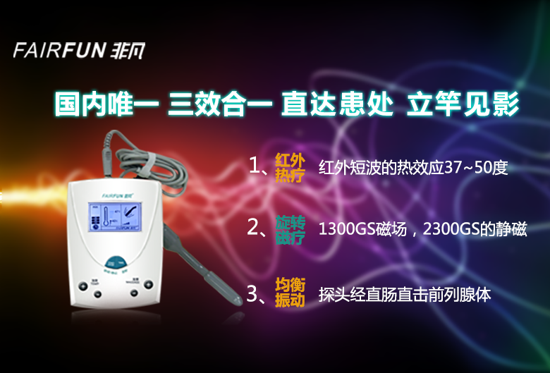 國(guó)內(nèi)唯一體內(nèi)多功能前列腺治療儀是經(jīng)20多名醫(yī)學(xué)、電子、生物磁學(xué)專家、教授歷經(jīng)五年共同研制的專治前列腺疾病的高科技發(fā)明專利產(chǎn)品。該儀器在綜合國(guó)內(nèi)外各種物理療法成功經(jīng)驗(yàn)基礎(chǔ)上,應(yīng)用現(xiàn)代生物磁學(xué)原理和電子控制技術(shù),經(jīng)不斷探索、實(shí)踐研制而成。該儀器采用獨(dú)特的弧形探頭集旋轉(zhuǎn)磁療、熱療、摸擬“手指按摩多功能于一體,并采用靜磁加動(dòng)磁相結(jié)合的方式,經(jīng)直腸直接施治于前列腺病灶。治療儀受到了全國(guó)著名泌尿外科、男科學(xué)專家和廣大臨床醫(yī)務(wù)工作者的高度贊揚(yáng),為前列腺患者提供了一種良好的治療手段!
