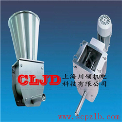 該微量添加給料機由料倉、倉內(nèi)攪拌送料器、緩沖室、物料喂出機構(gòu)、動力及支撐機構(gòu)、速度檢測及控制儀表等組成。裝入料倉內(nèi)的物料在“倉內(nèi)攪拌送料器”的作用下使物料進入緩沖室,由于該室內(nèi)特殊的“物料處理機構(gòu)”使進入其內(nèi)部的物料能始終保持相同的密度而不受料倉內(nèi)物料多少的影響,再通過“喂出機構(gòu)”將物料在動力驅(qū)動作用下均勻喂出。通過調(diào)整旋轉(zhuǎn)機構(gòu)的轉(zhuǎn)速可無級精確地調(diào)整流量。