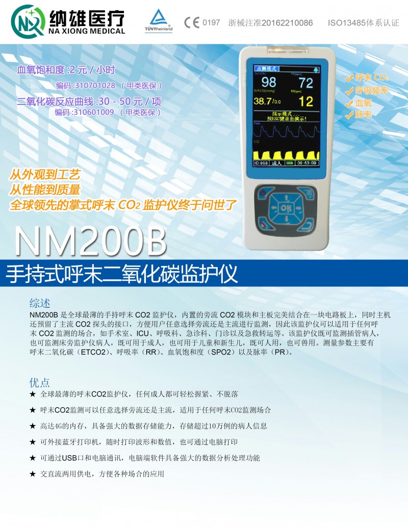 浙江納雄醫(yī)療器械有限公司生產(chǎn)的呼末二氧化碳監(jiān)護(hù)儀(血氧/呼末二氧化碳監(jiān)護(hù)儀)通過了歐盟TUV的CE認(rèn)證和中國SFDA的認(rèn)證。目前監(jiān)護(hù)類產(chǎn)品已經(jīng)遠(yuǎn)銷三十多個國家。