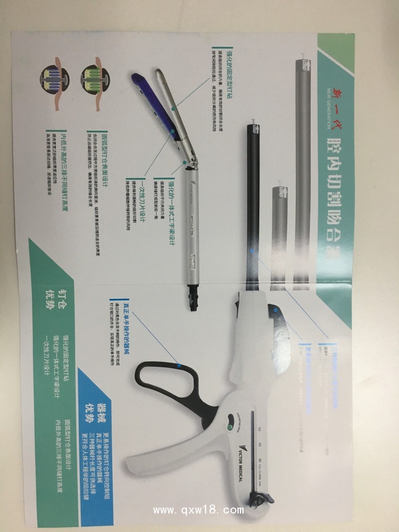 ? ? 產(chǎn)品的預(yù)期用途:本產(chǎn)品適用于開放或內(nèi)鏡下的外科手術(shù)中,肺、支氣管組織及胃、腸切除、橫斷和吻合。