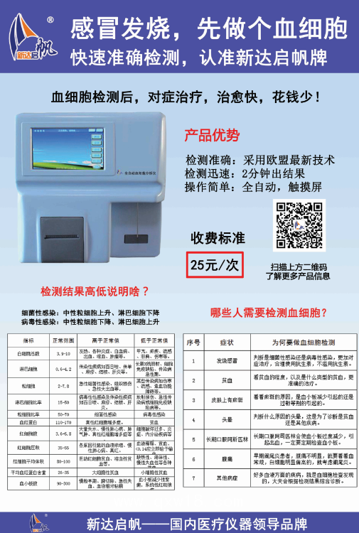新達(dá)啟帆全自動(dòng)血細(xì)胞分析儀¥28000元產(chǎn)品說(shuō)明: