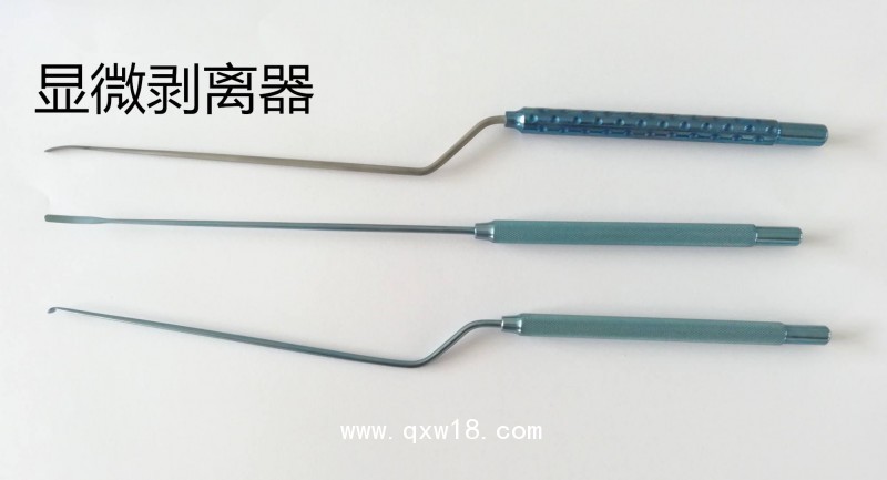 顯微剝離器供腦外科手術(shù)時(shí),剝離或分離顱骨膜及腦膜用,有直形和槍形兩種形式,頭部有葉片形、扁圓形、圓形三種。刃口有鈍與銳之分。在通常情況下,葉片形頭用于腫瘤剝離,葉片形頭銳口用于銳性分離;圓形頭用于細(xì)小腫瘤剝離及腦血管、顱神經(jīng)分離減壓,圓形頭鈍口用于鈍性分離,