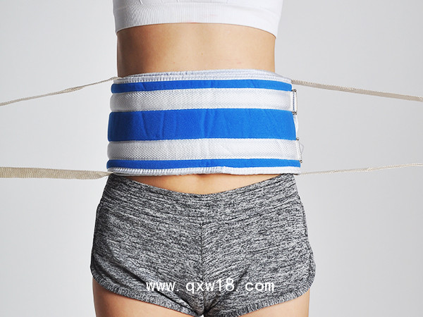 將復(fù)合布裹在胸部或者腰部,魔術(shù)貼粘在另一端的復(fù)合布上,織帶穿過拉芯金屬扣,根據(jù)病人承受程度拉緊織帶,兩根綁帶在床幫打結(jié)系緊。