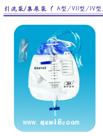 ???? I型(普通引流袋)由排液開(kāi)關(guān) [十字閥/拉拔閥/單手夾/旋轉(zhuǎn)閥/雙翼閥(B型)/上控閥(C 型)]、排液管(選配件)、袋體、掛繩(選配件)、懸吊裝置(選配件)、上接導(dǎo)管(選配件)、引入管(選配件)、止流夾(選配件)、接頭、接頭護(hù)帽組成。II型(防逆流引流袋)由排液開(kāi)關(guān)[十字閥/拉拔閥/單手夾/旋轉(zhuǎn)閥/雙翼閥(B型)/上控閥(C 型)]、排液管、袋體、防逆流膜片、掛繩、上接導(dǎo)管(選配件)、引入管、懸吊裝置(掛環(huán)/掛架)、止流夾(單手夾/片夾)、床單夾(選配件)、接頭(或帶采樣口接頭)、接頭護(hù)帽、轉(zhuǎn)換接頭(選配件)、排液閥插接管(C型)、排液接頭(選配件/C型)組成。III型(精密計(jì)量引流袋)由計(jì)量盒與貯液袋連接組成,其中包括計(jì)量盒排液開(kāi)關(guān)、計(jì)量盒排出管、貯液袋、計(jì)量盒、導(dǎo)流膜、止回閥、懸吊裝置、通氣口、接頭(或帶采樣口接頭)、接頭護(hù)帽、引入管 、止流夾(單手夾/片夾)、床單夾、貯液袋排液開(kāi)關(guān)[十字閥/拉拔閥/單手夾/旋轉(zhuǎn)閥/雙翼閥(B型)/上控閥(C 型)]、貯液袋排出管、轉(zhuǎn)換接頭(選配件)、排液閥插接管(C型)、排液接頭(選配件/C型)。IV-A型(腿袋)由排液開(kāi)關(guān)(十字閥/拉拔閥/單手夾/旋轉(zhuǎn)閥)、排液管、袋體、防逆流膜片、綁帶、上接導(dǎo)管(選配件)、引入管(選配件)、接頭(或帶采樣口接頭)、接頭護(hù)帽組成。V型(負(fù)壓引流袋)由排液開(kāi)關(guān)[十字閥/拉拔閥/單手夾/旋轉(zhuǎn)閥/雙翼閥(B型)/上控閥(C 型) ]、排液管、袋體、防逆流膜片、掛繩、上接導(dǎo)管(選配件)、引入管、懸吊裝置(掛環(huán)/掛架)、止流夾(單手夾/片夾)、床單夾(選配件)、接頭(或帶采樣口接頭)、接頭護(hù)帽、轉(zhuǎn)換接頭(選配件)、負(fù)壓裝置、排液閥插接管(C型)、排液接頭(選配件/C型)組成。VI型(尿套型引流袋)由排液開(kāi)關(guān)[十字閥/拉拔閥/單手夾/旋轉(zhuǎn)閥/雙翼閥(B型)/上控閥(C 型)]、排液管、袋體、防逆流膜片(選配件)、掛繩(選配件)、上接導(dǎo)管(選配件)、引入管、懸吊裝置(掛環(huán)/掛架)、止流夾(單手夾/片夾)、床單夾(選配件)、尿套、排液閥插接管(C型)、排液接頭(選配件/C型),組成。VII型(側(cè)排式引流流)由排液開(kāi)關(guān)(單手夾/旋轉(zhuǎn)閥)、排液管、袋體、防逆流膜片(選配件)、掛繩(選配件)、上接導(dǎo)管(選配件)、引入管(選配件)、懸吊裝置(選配件)、止流夾(選配件)、床單夾(選配件)、接頭(選配件)、接頭護(hù)帽(選配件)、轉(zhuǎn)換接頭(選配件)、排液接頭組成,VIII(嬰兒引流袋)由袋體、熱熔壓敏膠、海綿(選配件)、隔離紙、尿液收集孔組成。