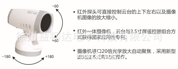 2.紅外探頭可以控制攝像機(jī)圖像放大、縮小、控制云臺(tái)上下左右、以及圖像采集功能