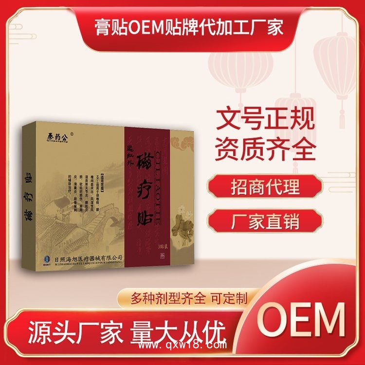 遠(yuǎn)紅外磁療貼代加工/ 械字號(hào)膏藥生產(chǎn)廠家 / 可批發(fā)可代加工產(chǎn)品說明:
