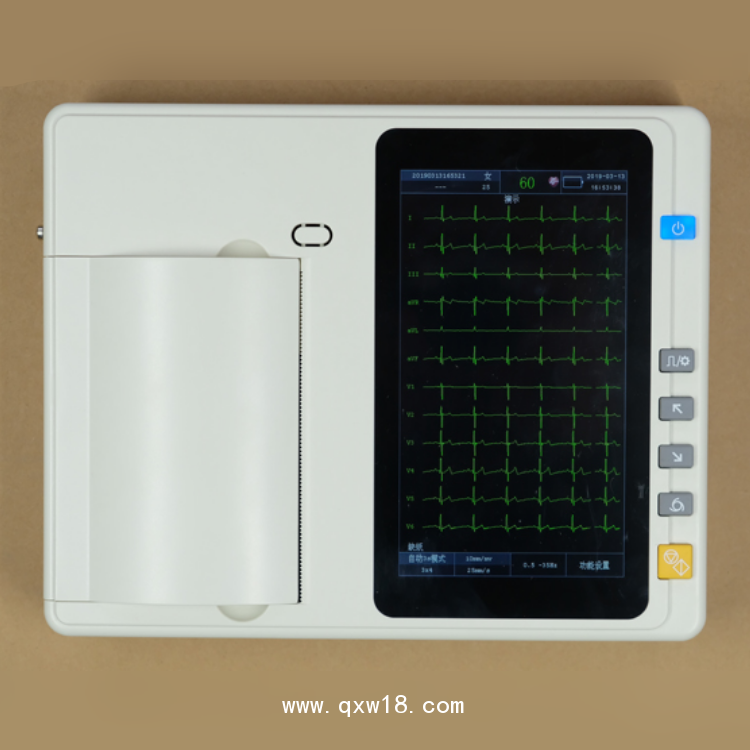 4. 采用高分辨率熱點(diǎn)陣記錄方式,自動(dòng)打印導(dǎo)聯(lián)系統(tǒng)、走紙速度、患者信息等;