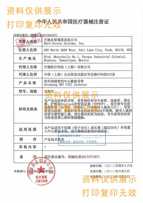 產(chǎn)品使用范圍:經(jīng)外周插管的中心靜脈導管套件適用于建立血管通路,可能于采集血液樣本以及注入藥物或溶液。
