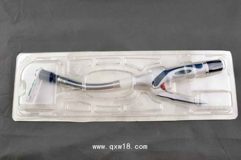 該產(chǎn)品主要由器身、握把、旋轉(zhuǎn)尾翼、釘匣、釘砧和穿刺器構(gòu)成。縫釘材質(zhì)為鈦,器械桿材質(zhì)為301不銹鋼,切刀材質(zhì)為410不銹鋼,穿刺器和握把材質(zhì)為聚碳酸酯。