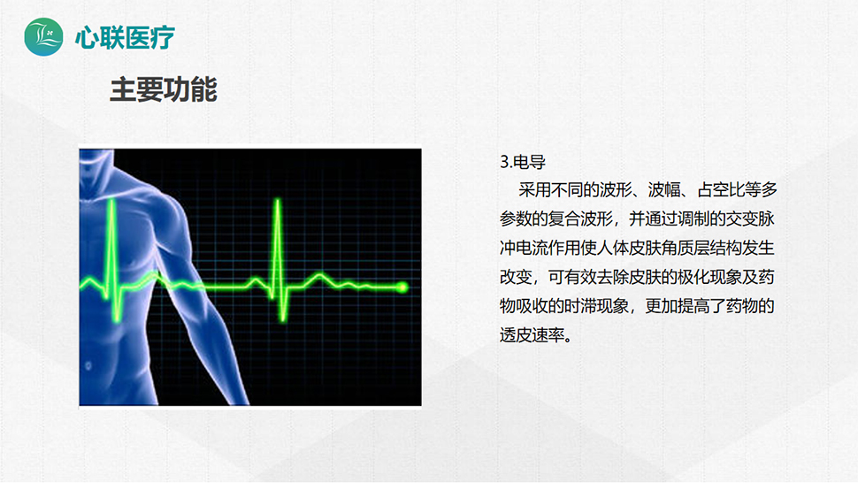 產(chǎn)品描述:由主機(jī)、2個治療頭組成。經(jīng)皮給藥貼片,可以控釋藥物通過完整皮膚而進(jìn)入人體循環(huán),發(fā)揮藥物治療作用。