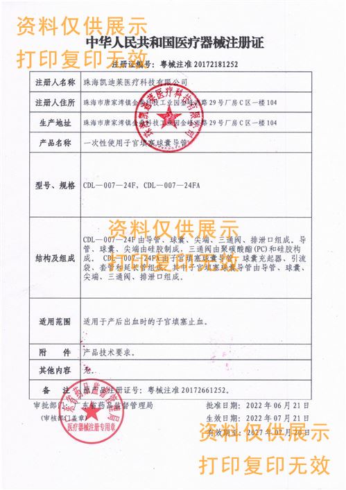 一次性使用子宮填塞球囊導(dǎo)管CDL-007-24F產(chǎn)品說明: