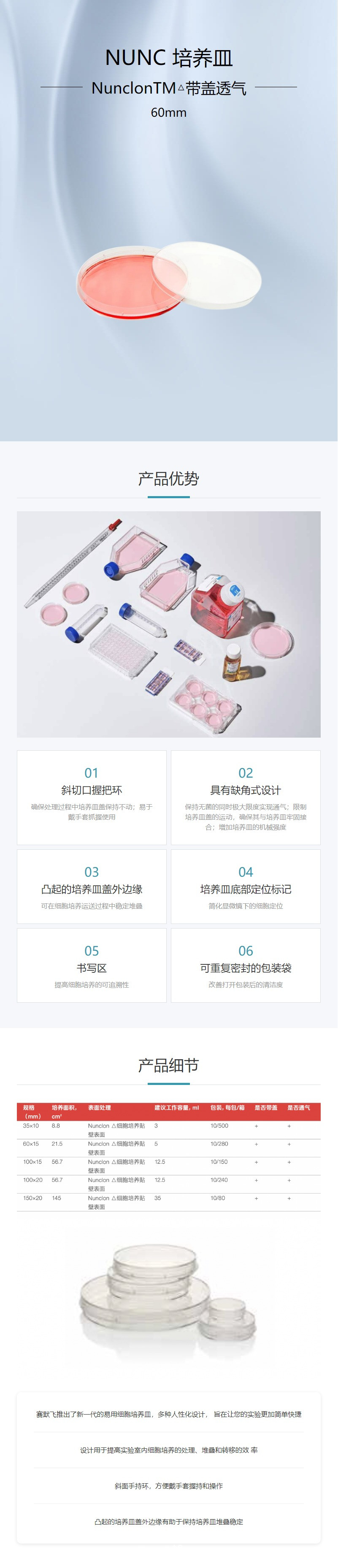 NUNC-培養(yǎng)皿NunclonTM△帶蓋透氣-60mm產(chǎn)品說明: