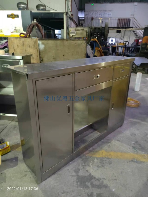 【工作臺臺面】:一般用30mm或50mm的高密度板外面用不銹鋼封面,四周封邊。