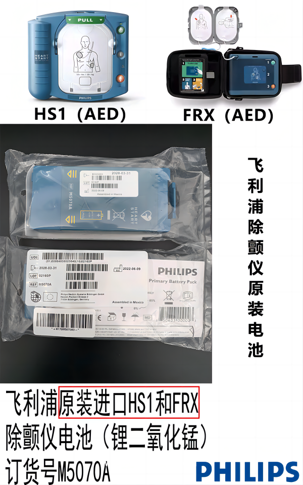 飛利浦原裝進口HS1(M5066A, M5067A, M5068A)和FRX(861304,861305)除顫儀一次性電池(鋰二氧化錳)(重量≈0.23公斤)(日期到2028-03)訂貨號M5070A或989803121381