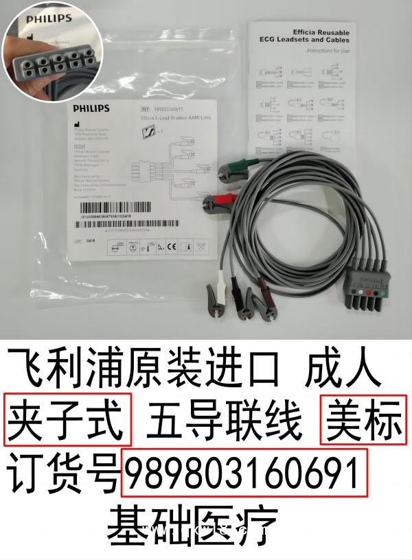 飛利浦基礎醫(yī)療 原裝進口 成人夾子式 五導聯(lián)線 美標 訂貨號989803160691