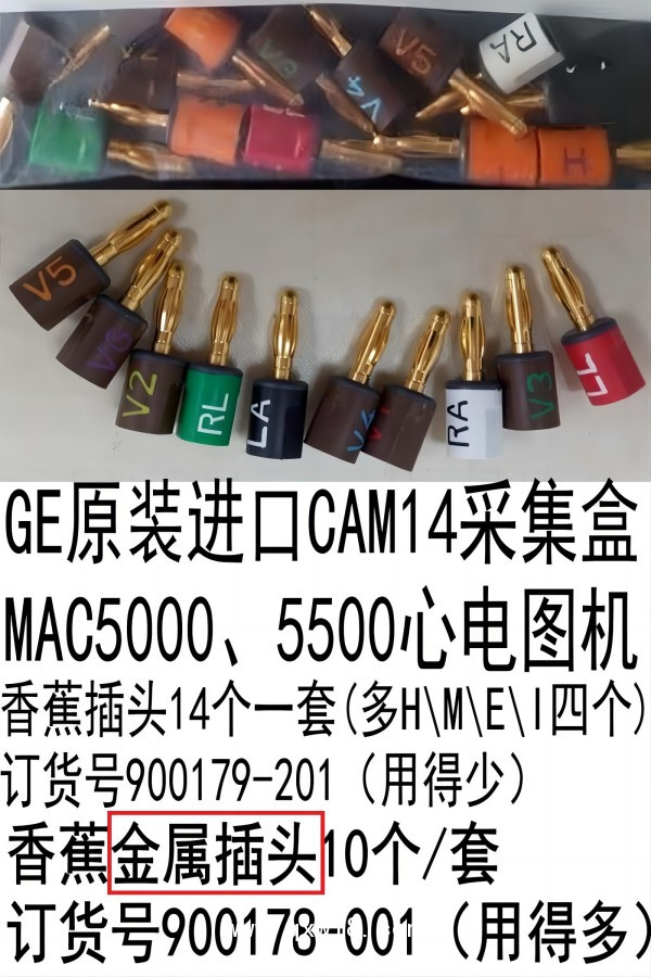 GE原裝進(jìn)口CAM14MAC5000系列心電圖機(jī)美標(biāo)金屬香蕉插頭10個(gè)/套訂貨號(hào)900178-001