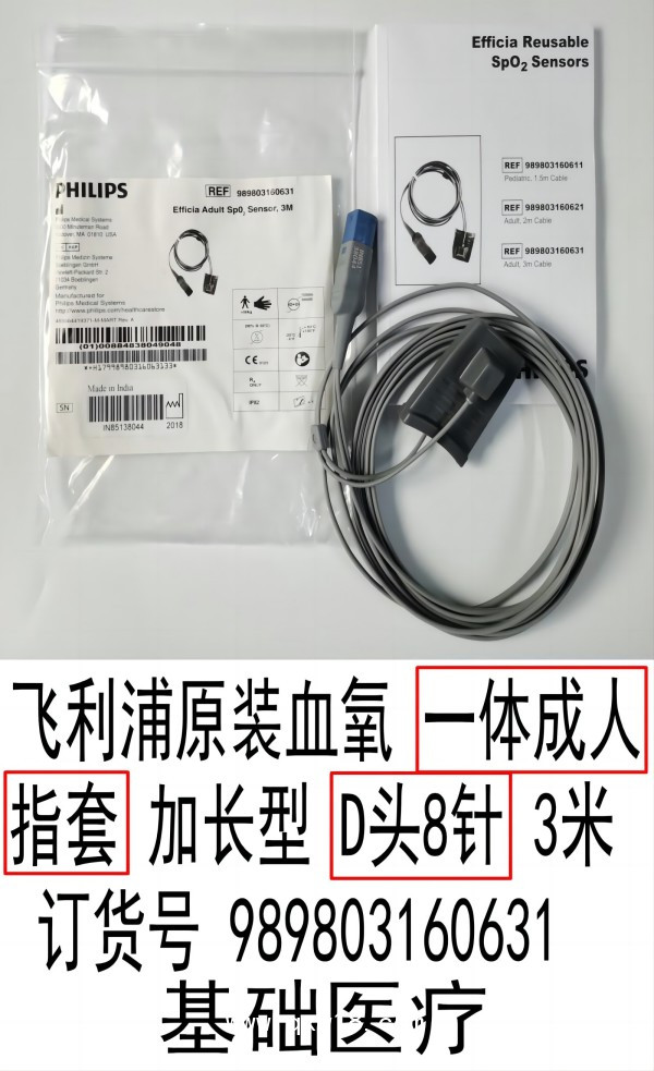 飛利浦原裝基礎(chǔ)醫(yī)療經(jīng)濟型血氧一體成人指套 加長型D頭8針 3米 訂貨號989803160631?
