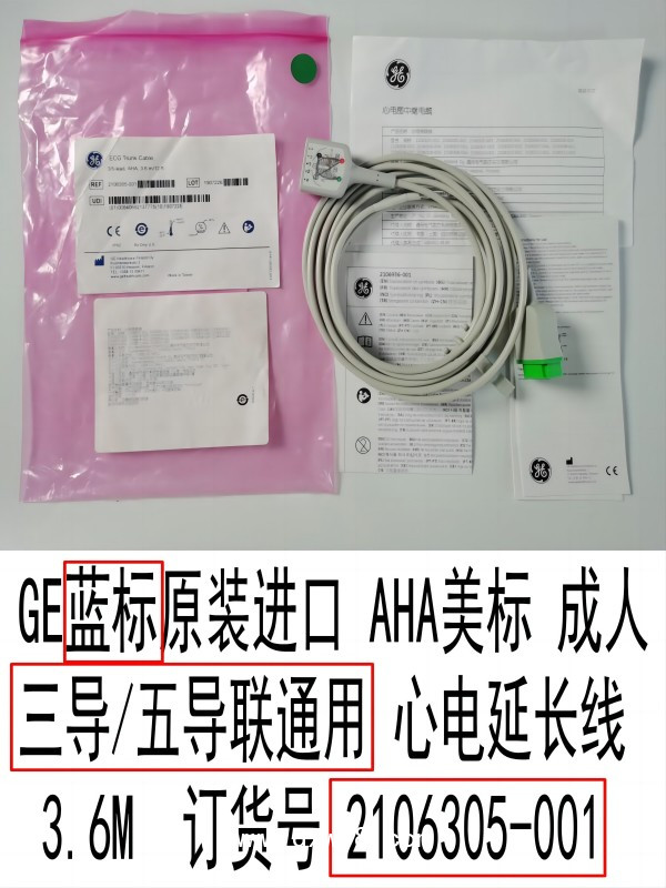 GE 藍(lán)標(biāo) 原裝進(jìn)口 AHA美標(biāo) 成人三導(dǎo)/五導(dǎo)聯(lián)通用 心電延長線3.6M 訂貨號 2106305-001 原訂貨號2017003-001