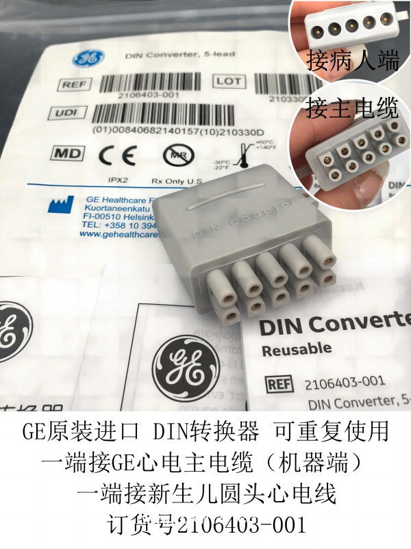 GE原裝進口 DIN轉(zhuǎn)換器 可重復(fù)使用 一端接GE心電主電纜(機器端) 一端接新生兒圓頭心電線 訂貨號2106403-001