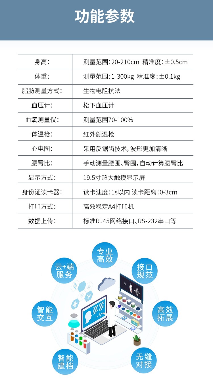 健康體檢一體機(jī) 功能多樣 一鍵測(cè)量 使用方便產(chǎn)品說明: