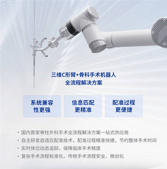 普愛醫(yī)療是國內(nèi)僅有一家兼“骨科手術(shù)機器人+平板三維C形臂”全流程解決方案的廠家,借助一體化自適應(yīng)配準(zhǔn)技術(shù),可實現(xiàn)自動注冊和配準(zhǔn),精度不受圖像質(zhì)量影響。臨床精度達亞毫米級(0.7mm),相比傳統(tǒng)手術(shù)具備定位精度高、手術(shù)切口小的優(yōu)勢,助力骨科手術(shù)智能化。