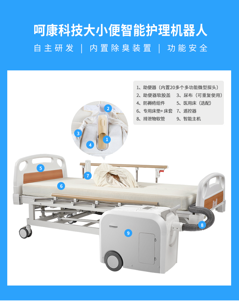 呵康全自動(dòng)大小便智能護(hù)理機(jī)器人產(chǎn)品說(shuō)明: