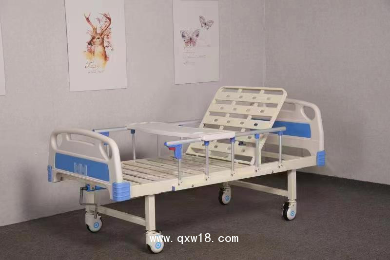配置可選:ABS單搖+ABS床頭床尾+五檔不銹鋼立柱護(hù)欄+搖桿系統(tǒng)+輸液架+餐桌+靜音輪