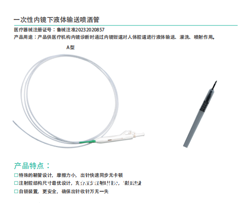 產(chǎn)品供醫(yī)療機構內(nèi)鏡診斷時通過內(nèi)鏡鉗道對人體腔道進行液體輸送、洗、射作用。