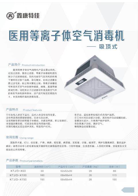 醫(yī)用等離子體空氣消毒機(jī)吸頂式產(chǎn)品說(shuō)明:
