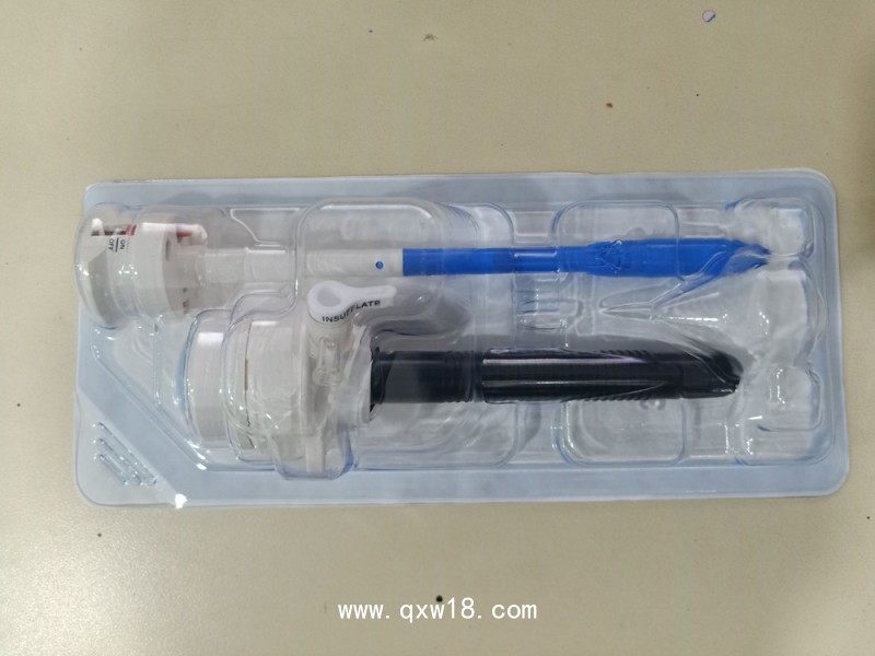 ? ? ??該產(chǎn)品由穿刺器套管、穿刺椎(帶有刀頭和安全保護(hù)罩)、密閉墊、三向閥門(mén)組成。其中穿刺器套管分為一次性使用固定套管和可重復(fù)使用套管;穿刺椎的頭端帶有錐形穿刺器刀頭(錐形尖端和一個(gè)裝有彈簧的安全保護(hù)罩)或 V字形穿刺器刀頭(具有一個(gè)鋒利的雙面V形刀片和一個(gè)彈簧式安全保護(hù)罩)。穿刺器刀片材質(zhì)是304不銹鋼;一次性使用固定套管和三向閥門(mén)是聚碳酸酯;可重復(fù)使用套管釆用純鈦材料制成;穿刺錐和密閉墊的材質(zhì)是ABS樹(shù)脂。