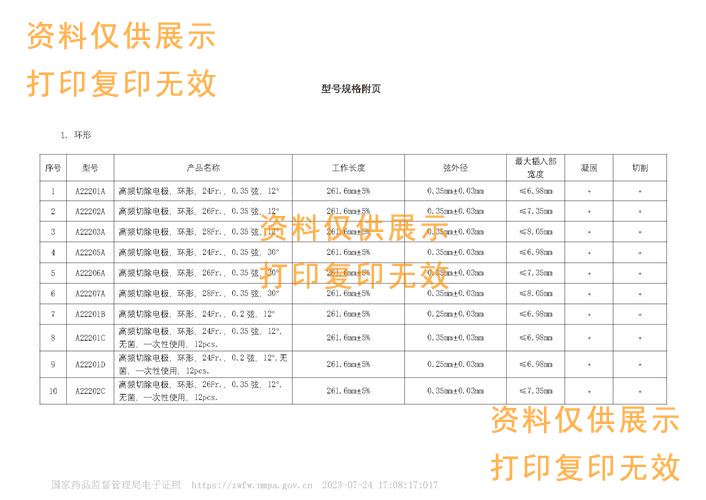 規(guī)格:環(huán)形,24Fr,0.35弦,12°,工作長度261.6mm±5%,弦外徑:0.35mm±0.03mm,最大插入部寬度≤6.98mm