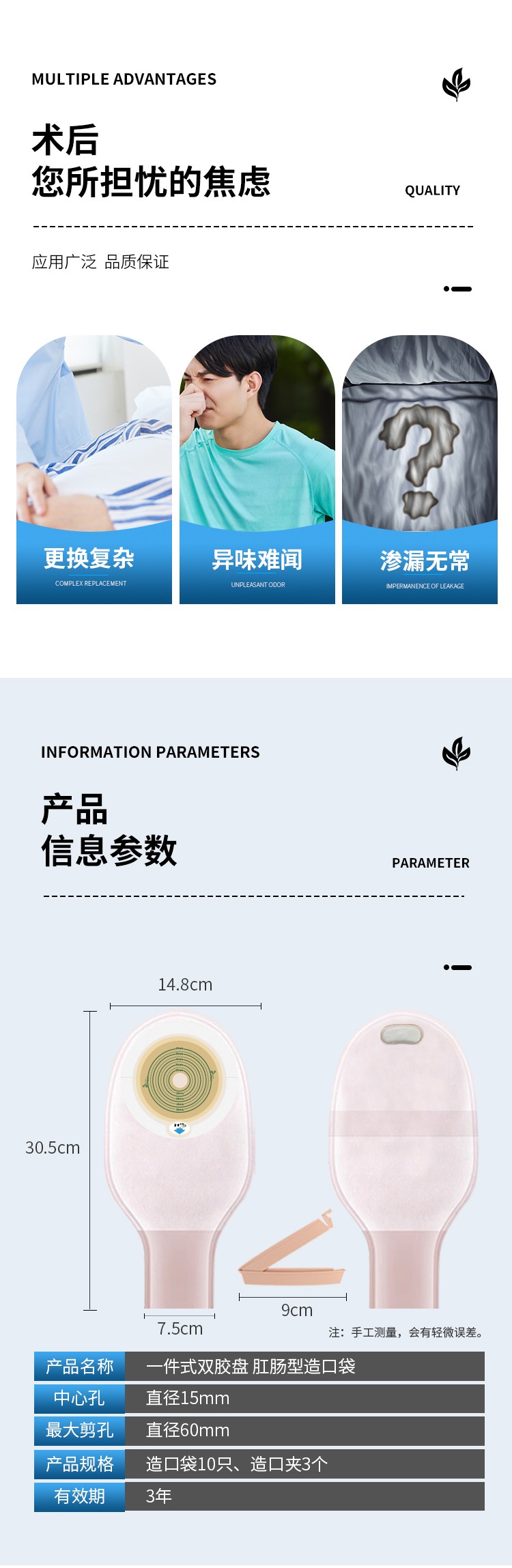 一件式雙膠盤固定造口袋 醫(yī)院用造口袋造口護理粉產品說明: