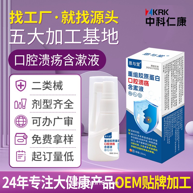 吉博士重組膠原蛋白口腔潰瘍含漱液廠家 二類器械口腔潰瘍噴劑代加工定制產(chǎn)品說明:
