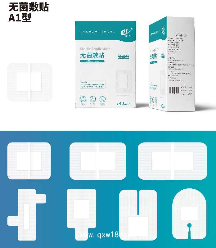 A1型由涂有壓敏膠的無紡布(涂膠基材)、吸收敷墊、離型紙組成。A2型由涂有壓敏膠的無紡布(涂膠基材)、離型紙組成。
