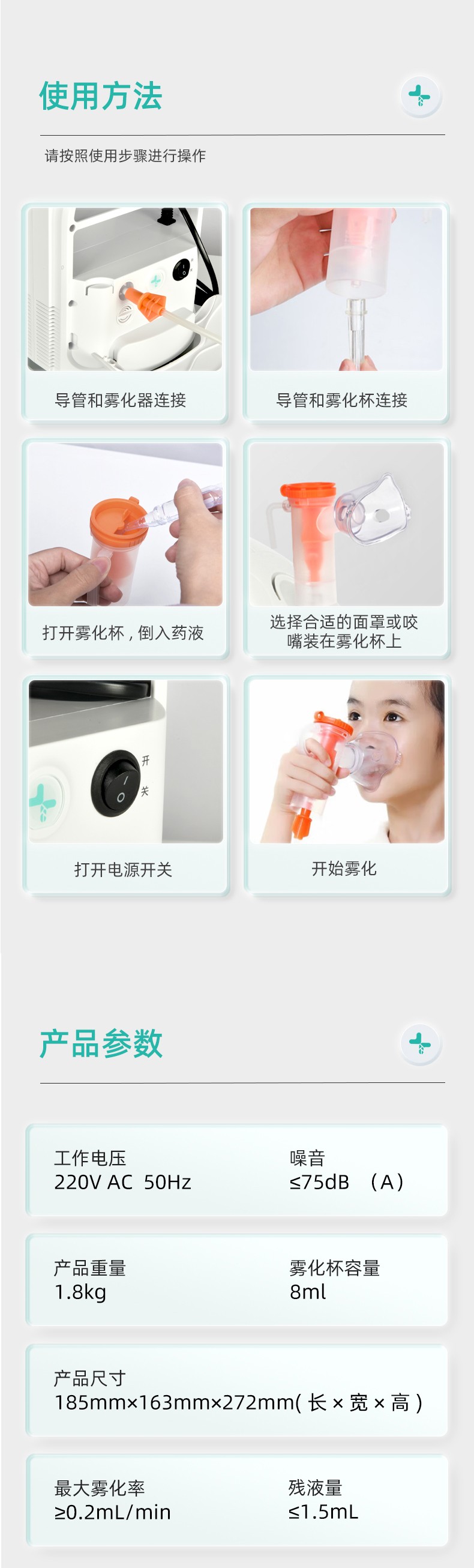 壓縮式霧化器醫(yī)用醫(yī)療家用兒童老人嬰兒霧化機(jī)器產(chǎn)品說明: