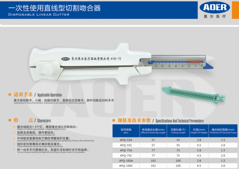 一次性使用直線型切割吻合器產(chǎn)品說明: